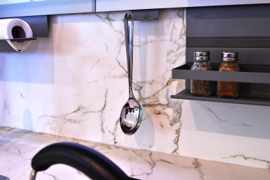 Gracias a que es ultracompacto, Dekton no se raya con los utensilios de uso doméstico. Aún así recomendamos el uso de tablas de corte para cuidar los utensilios.